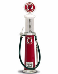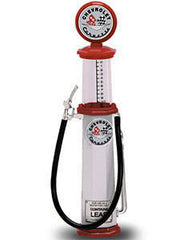 1950's Authentic Gas Pump Island Set with Accessories. Set includes: two 3.5" long digital Red Crown gasoline pumps, one shovel, one push broom, two gas cans, four traffic cones and one bucket. Features detailed 1:24 scale diecast replica of the 1950's gas pump, pad printed graphics, and working hose nozzle.