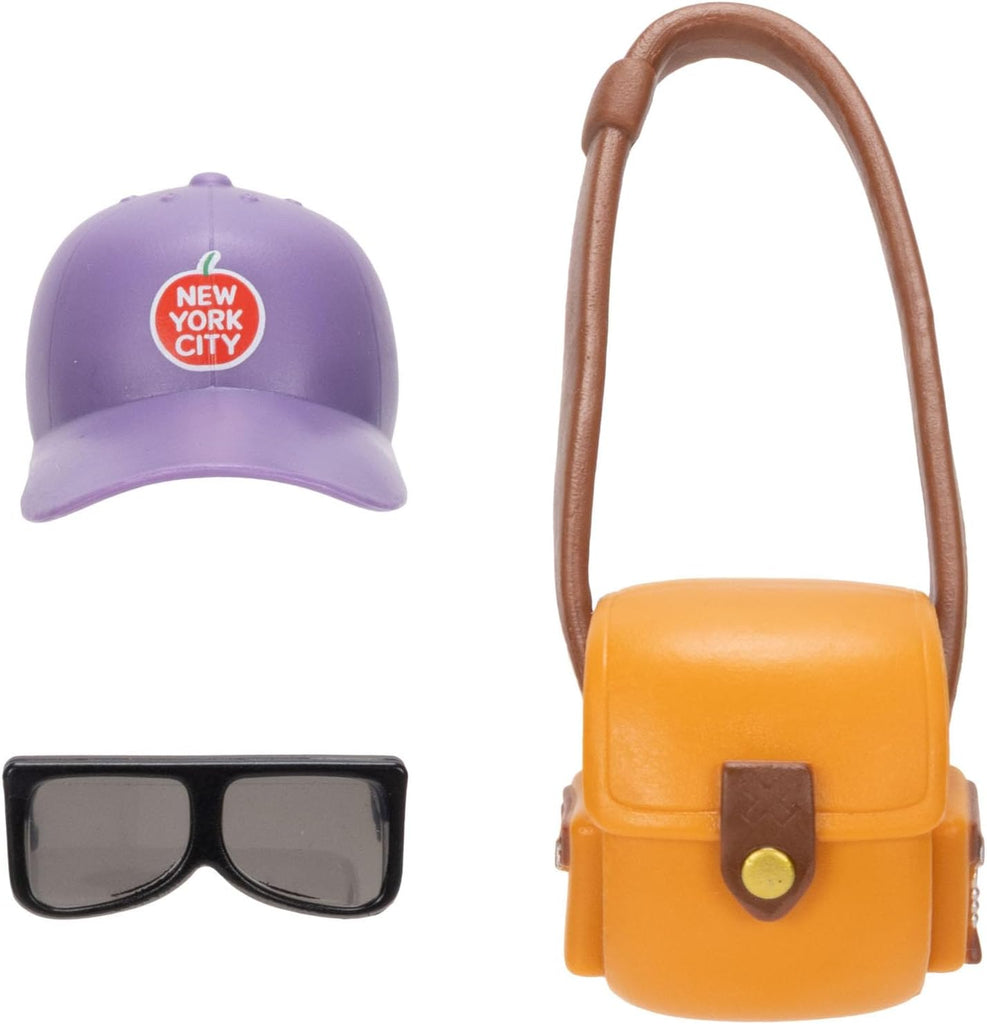 Hat, sunglasses, and satchel accessories
